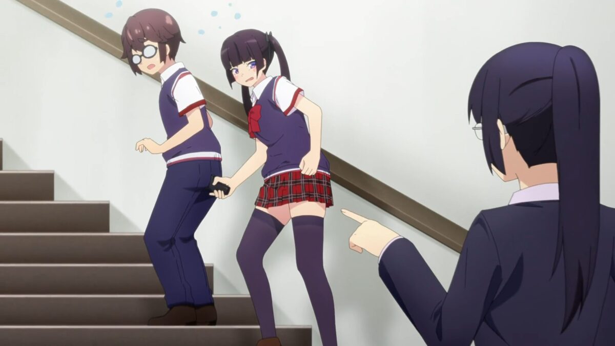 But, due to the lack of duct tape, Makina-san’s leg dropped faster than the US economy, and Eita had to rush to save her. But being the awkward nerd he is, he buzzes around her like a stalker. In fact, he brings so many get-in-the-van vibes that Makina’s friend Minami confronts him. While admirable, that’s a girl who’s firmly suffering from hentai rot. Because the first things she thinks about are womb tattoos, hypnosis, and all manner of doujin tags. And instead of going to the police like a sane person, she confronts him by slightly shoving a stun gun up his ass. That is a sentence I never thought I’d write.