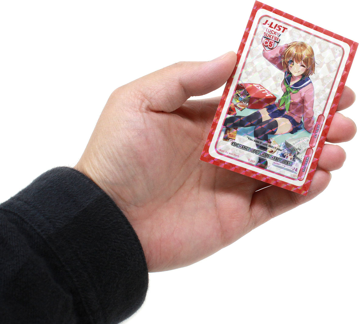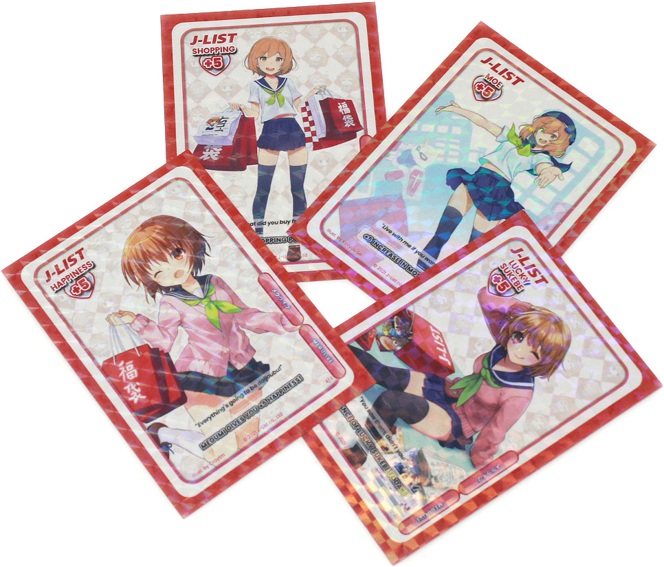 J-List is proud to announce the brand new Megu-Live Idol Card Battle Game, which lets you battle your friends with J-List’s cute mascot, Megumi! There will be a total of 4 Megumi cards to collect and all give you different types of bonuses such as +5 Moe, +5 Shopping and +5 Happiness. There’s even a card for +5 “Lucky Sukebe,” which might land you in an unexpected sexy situation. You get one card with each order from J-List while supplies last, or the full set if you spend $150 or more!
