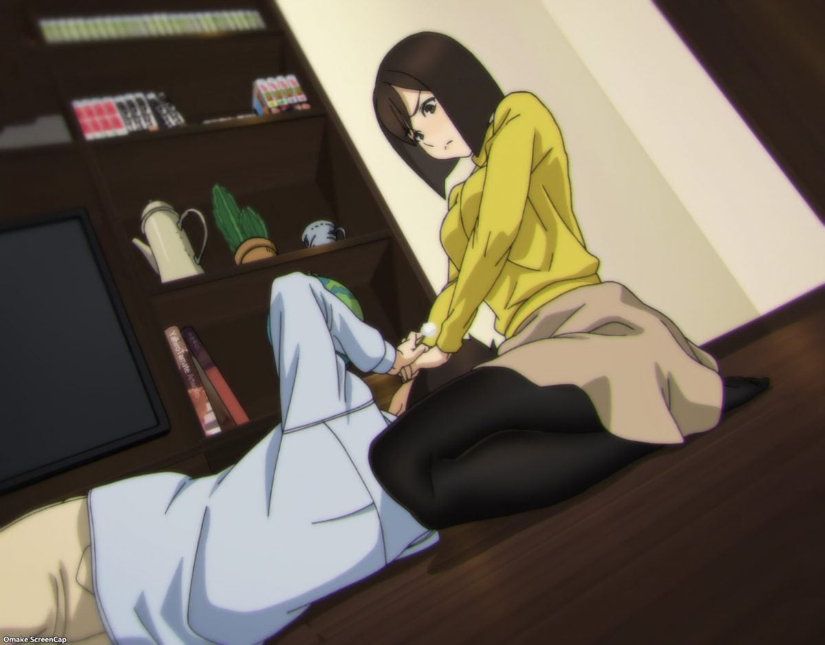 I found it hilarious that Rui got too excited over his big sister’s thighs because the pictures he was just looking at before Homi barged into his room were for ear cleaning, by Yua no less, and of his sister wearing tights over her swimsuit like in her previous episode. Naturally, the lad was going to get a very confusing physical reaction to Homi looking for more ear wax to pick as he sank into her warm hose-covered lap. Considering how the whole ear cleaning ritual is a sign of a more romantically intimate relationship as people get older, I really appreciated Rui-kun’s reaction to Homi insisting on cleaning his ears as if he were still a little kid.