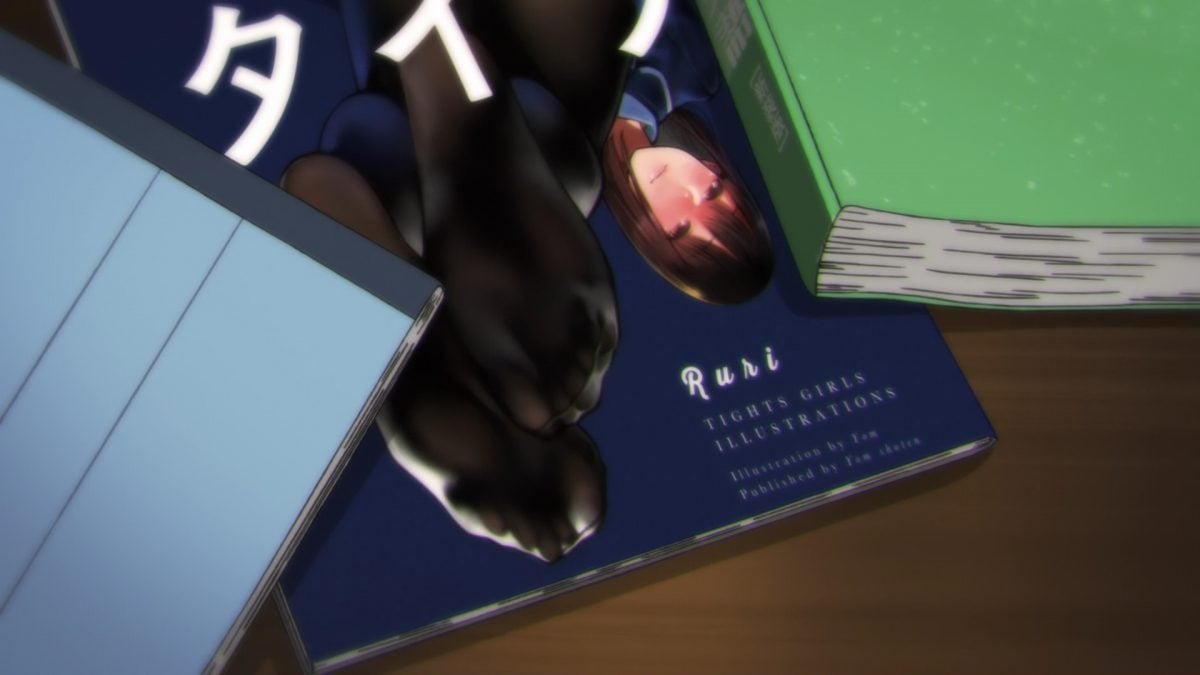 Rui-kun is looking at Yom’s book, at the part with ear cleaning and his sister’s tights over a swimsuit. That book gave the girl long hair, but we know better.