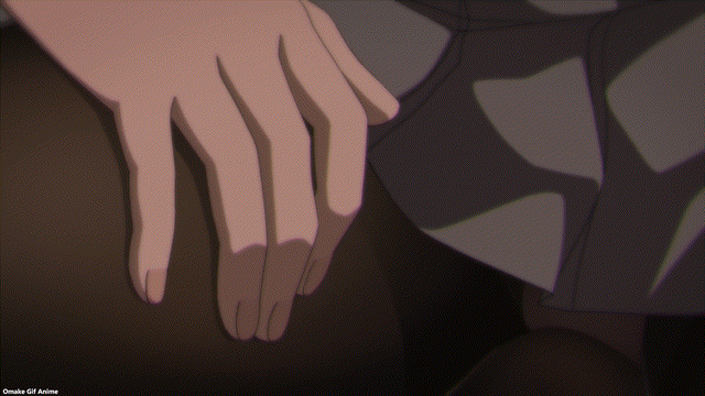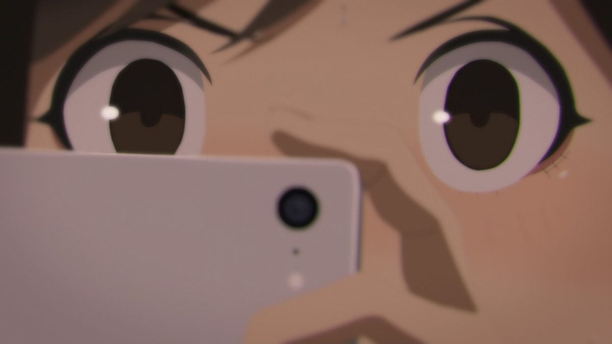 The episode’s premise is fun. Apparently, Yom, or someone just like the artist, wants Yua to cosplay model his tights-based drawings. Yua is used to taking selfie pictures for her Twitter feed, but she’s not used to someone else taking her pictures. This is where Homi comes in and where Ren gets to watch the whole practice shoot disapprovingly. It was great watching these three interact again. I got a kick out of all the levels of meta self-references between Yom, his artwork, the anime based on his characters, and how you can keep going around and around making the connections. Just make sure to go to Yua’s Twitter feed. The full-size pictures of Yom’s, er, the artist’s inspiration is all there.