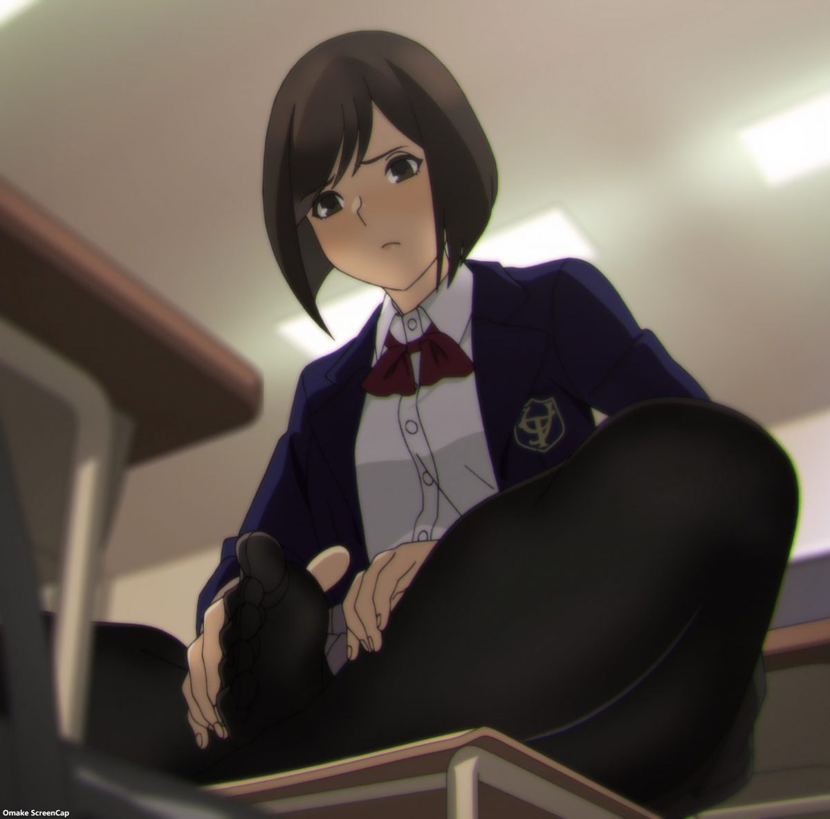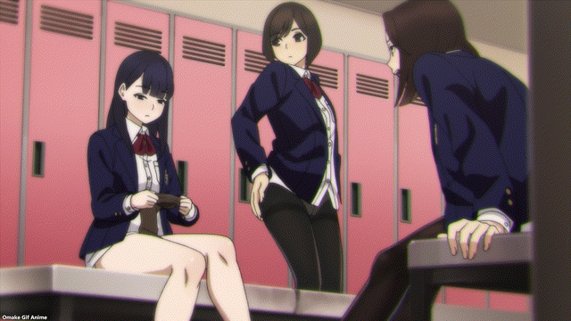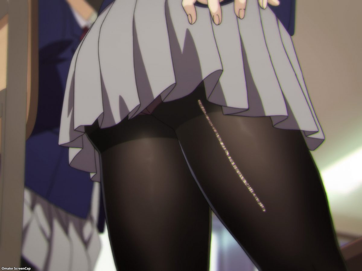 This week, we got to see more of the friendship dynamic between the three girls. The interplay of their personality quirks, especially how Homi is so quick to pull down her pantyhose in a classroom full of boys, led to great moments in comedy and even some friendly yuri. A girl jumping on top of a pile of squirming legs, adding her own squirming legs, can be yuri, yes?