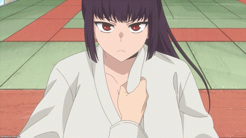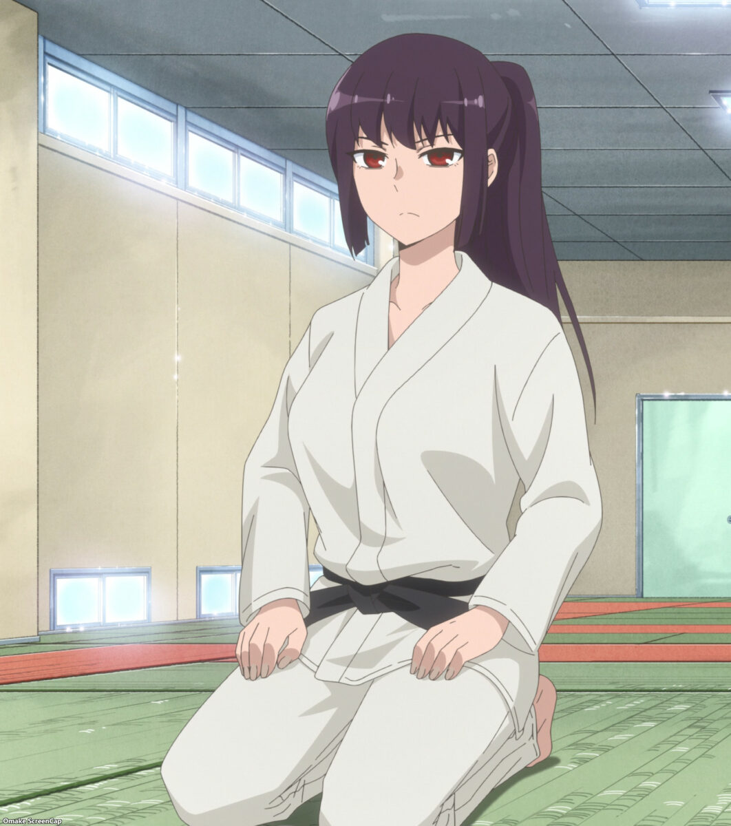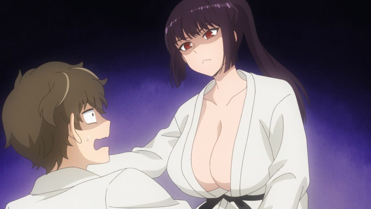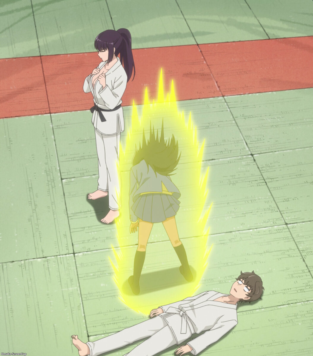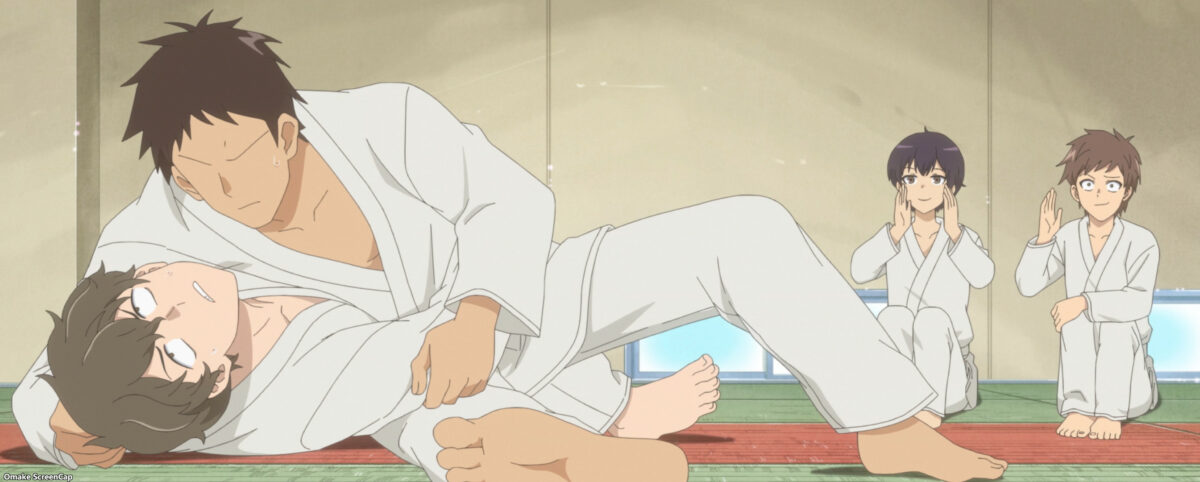 Senpai recognizes Nagatoro’s judo stance when she poses for him. Nagatoro spars with Senpai at Gamou’s family gym.