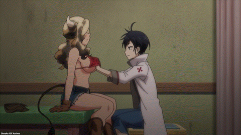 The character designs for the monster girls in Monster Girl Doctor made it clear these beautiful girls were going to find themselves in sexy situations. But how? Doctor Glenn doesn’t appear to be the type who courts ladies on his own initiative. He is a doctor, and I’ve seen enough of fanservice anime to know what that means. Yes, we will have accidental ecchi from monster girls moaning during medical exams. Add in a pouty, jealous wannabe-girlfriend watching the proceedings and counting the days until her own next exam, and we have all the ingredients necessary for comedy harem ecchi high jinks.