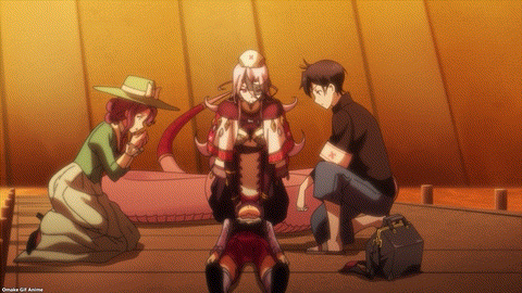 There were also hints of more drama to come in Monster Girl Doctor, as Sapphee explained to Glenn how much Lindworm had developed under the direction of a dragon lady named Scadi. Putting aside for now why Glenn doesn’t know about this rapid upheaval only 10 years after the human-monster war ended, it’s clear Sapphee is going to be the audience’s exposition device for all things monster girl related. Glenn may have gone to monster medical school, so he knows how they work from a mechanistic-biological sense, but as a human, he has huge gaps in his knowledge of their culture and politics. That’s good! We’re supposed to identify with Glenn first, empathize with his attitude of treating humans and monsters the same, but accept that we still have much to learn of them and from them.