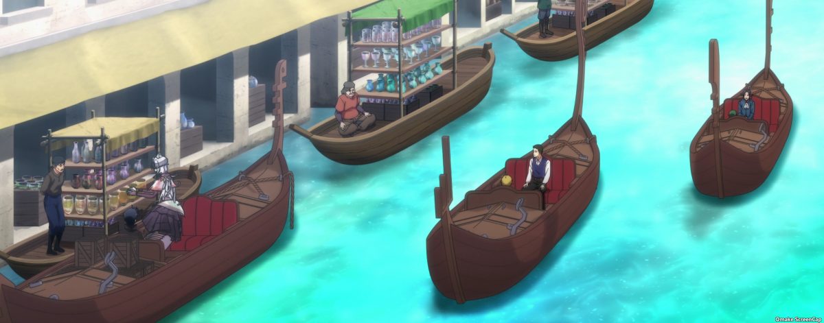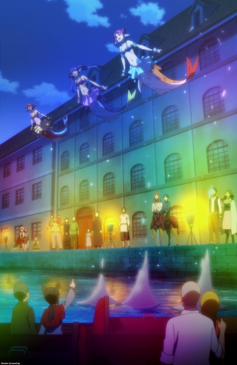 Ha. Sapphee wants to go shopping to continue her “date” with Glenn. It really feels like being a tourist in Venice. Ah. Here comes the monster girl of the week plot. Singing mermaids at the Mermaid Show. Lulala is a singer busker. Glenn noticed she has a health problem. Sapphee thinks Glenn is ogling another monster girl, this time Lulala for her tan, which makes her jealous because she has pale skin. Lulala is good at plucking on Sapphee’s heartstrings. She’s a good mermaid saleslady.