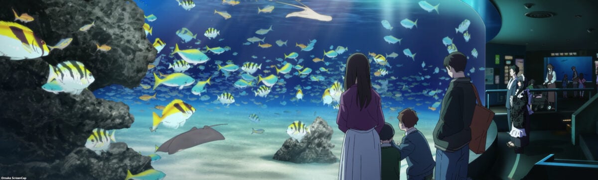Aha. My Dress-Up Darling does a bit of cosplaying to satisfy the premise. A local aquarium hosts a cosplay event where the models can take pictures with the fish. Marin dressed as Shizuku-tan, so you know she’s wearing a boob bag. Ooh. Marin detected an ecchi cosplayer! That shocks even the fish! Amane Himeno notices how Gojou and Marin act like rookies in the cosplay pastime.