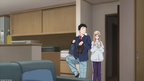 Food porn in My Dress-Up Darling. Rice porridge hand feeding. But they’re not dating! Aw. Marin’s sickness came at the worst time. She was out of food, couldn’t move, and she felt total relief from Gojou visiting her. Don’t leave yet, Gojou-kun. Marin’s temperature went down, but Gojou faces a worse crisis. Marin’s friends visited her after school! He’s still self-conscious about starting rumors that he and Marin are dating. Har. Gojou hid on the veranda and caught a cold.
