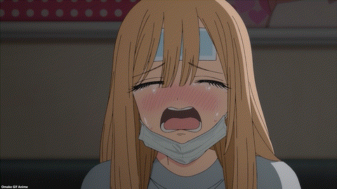 No surprises. Marin got sick! Funny. The cool kids call their teacher “Hana-chan” instead of “Hana-sensei.” This news worries Gojou because she never replied to his text. Whoa. Marin has a bad cold. She can’t even put on her red contact lenses. Aw. Gojou worried so much that he skipped school. He also claimed to be sick. Oh no. Gojou must touch Marin’s regular clothes to change her sweaty ones. Can he do it? Okay, maybe not that T-shirt.