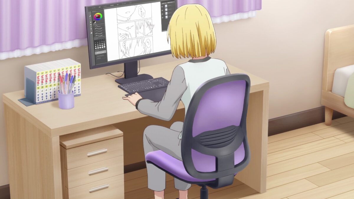 My Tiny Senpai followed two rules to make an entertaining story. The first rule is “Know your audience.” Its setting is an office romance, but the characters’ attributes and plot fit the attention of a demographic of manga readers and Comiket fans. There are even bonus points for Azur Lane references. Chinatsu is a digital production artist and designer at the company, so it makes sense that her hobbies would use those software packages in her spare time. Her character attributes fit into the second rule for crafting an attention-grabbing story.