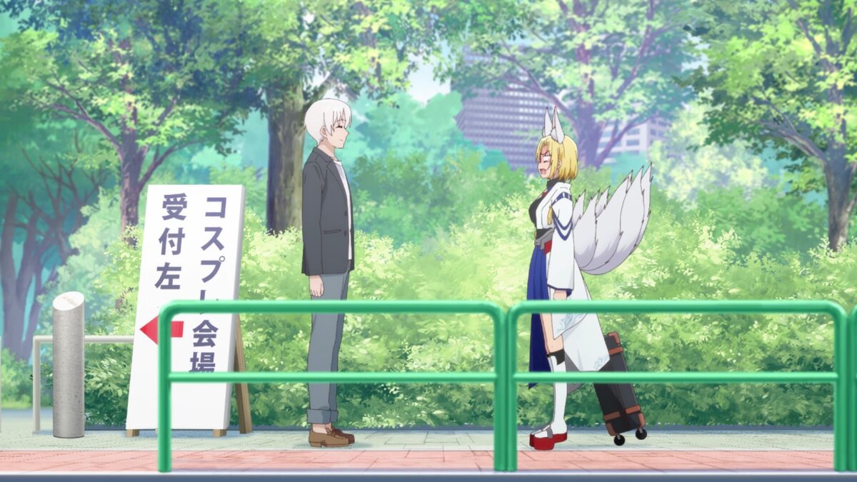 My Tiny Senpai is back after a week, thanks to the British Open preempting its scheduled time. Azur Lane cosplay festival! Mikasa, Javelin, and Belfast walk by. Who is Chinatsu playing? Oh no. Mr. Manager ran into her as a sexy Kaga! Is being a 22-year-old otaku still such a stigma? Chinatsu is a terrible liar. How would a stranger call a strange man on the street “Mr. Manager?” Oh, come on. Chinatsu thinks Mr. Manager is a “normie,” but she already knows he has a “weird hobby.” Normies don’t pull strings to arrange dates and then stalk the pair. He’s an office romance otaku, okay? See? He called her “cool.” The side character romance progresses nicely. Oh, stop. Mr. Manager claims he has no hobbies. Yes. Chinatsu’s Kaga cosplay looks more “cute” than “cool.” Ooh. They share a secret now!