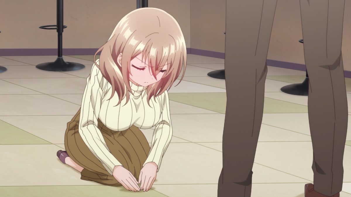 Wow. Chinatsu is a full-blown otaku. Cosplay and drawing doujinshi for Comiket. But she can’t concentrate because she worries about Mr. Manager blabbing about her secret otaku hobby. Chinatsu is a mess at work too. Shiori advises her to get plenty of sleep by counting kittens. Wouldn’t that keep the tiny senpai awake? Aw. Chinatsu is super jumpy around Mr. Manager. Whoa. Mr. Manager straight out asked her to dinner! I’m sure it’s related to business mentoring. But! This is a comedy, so let’s drag out all the suspicions! Prince Charming still comes to Chinatsu’s rescue. Odd. How often does Mr. Manager glue women’s heels back on their shoes? Shouldn’t he remember Chinatsu from touching her feet and interviewing her later? Chinatsu needs more self-esteem. So. Dinner was just work-mentor stuff. I’m waiting for the punchline, though. Here it comes! Mr. Manager wants to go to Chinatsu’s next cosplay event!