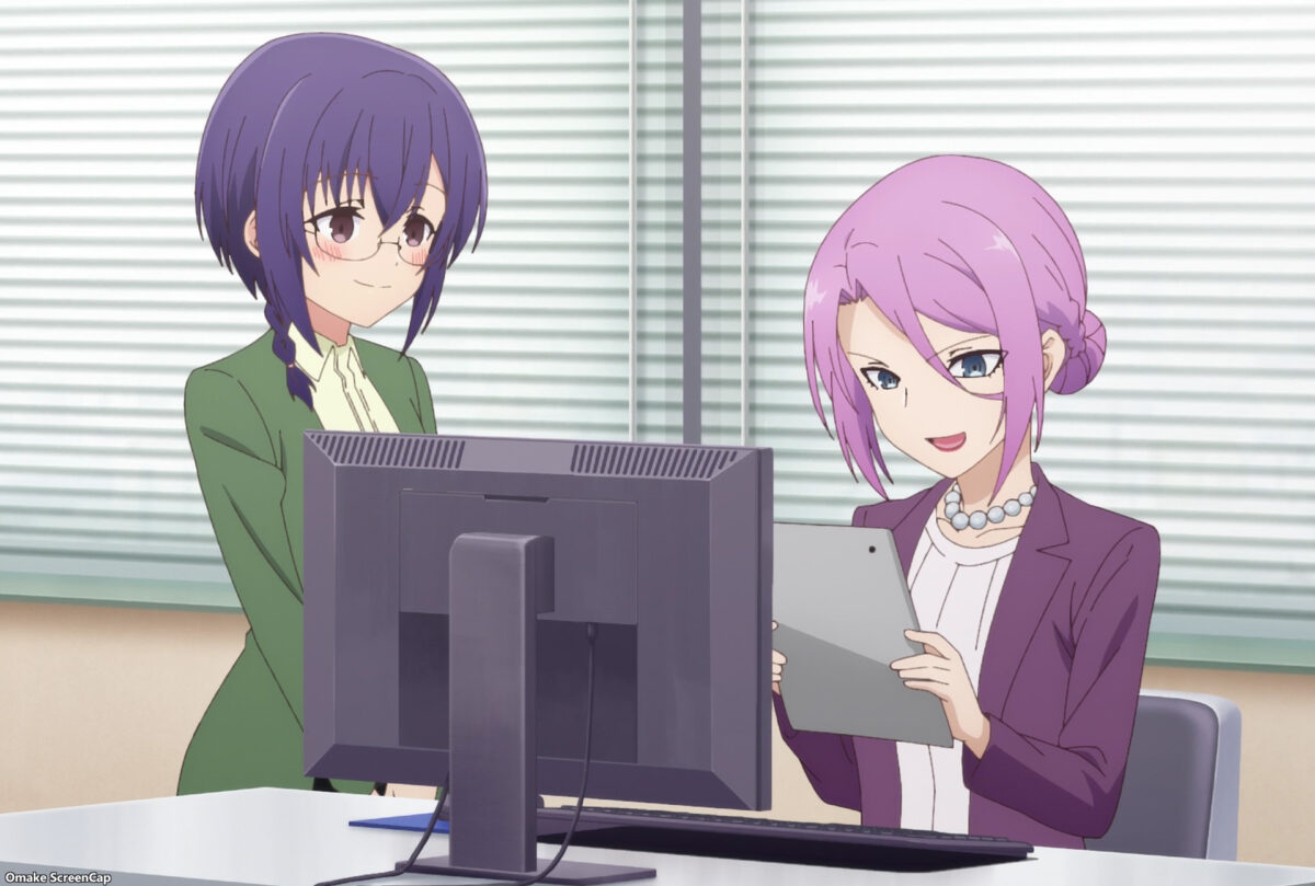 Product development has many roles, and (obviously) the company for My Tiny Senpai did not hire Akari as an artist. Chinatsu is a designer with art production skills, but Shinozaki and Shiori have communication and ad copy talents. Why does Akari think she needs to do every part of her proposal when the rookie prize goes to the department? Just ask the digital artists to make her graphics! These people want to go to Okinawa, too! Shiori advised Akari about her corporate duties: admit a problem before it becomes a problem for customers. Can you imagine how much better the world would be if everyone followed this advice? And that’s why I’m watching anime… Yuri subplot — confirmed! Plus, Shiori sees father material in Shinozaki. You know what I mean, you cynical degenerate!