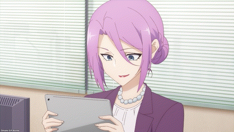 Cute! Shinozaki caught Shiori singing to herself. Even better, Shiori recovered and made him sing along! Power harassment is a human resources issue, you know. Akari looks stressed working on her best rookie presentation, but Yamagishi recommends that she throw something together. Well, he doesn’t want to win anyway. He’d rather stay home than go to Okinawa with the band of PR department misfits. Hah! Shinozaki feels extra motivation to see his department in Okinawa. Two big reasons on a smol body! Shinozaki never told us why he kept the contest stakes between Dev Group 1 and 2 from Shiori. Oh well. That adds nervous drama. Um. Does “eating a person” combat nervousness outside of public speaking situations? Shiori thinks so. Talk to the hand!