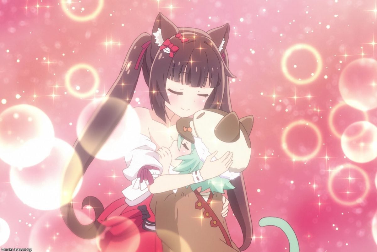 The situational comedy in the episode answered that question. We saw Chocola try to hide a stray kitten who followed her home. This is the kind of plot you see in live-action sitcoms where one of the children in a family tries to keep a pet. The secret is always found out by the older siblings and later the parents. The children ultimately learn some life lessons about responsibility. What this means for Nekopara is that the cat girls are the masters’ adopted children. I’m assuming the eroge elements are being put aside, so I’m going to ignore that extra spice of “family relations.” Well, there’s one exception. I’m paying attention to what’s happening between Cinnamon and Maple. Cinnamon is totally making a yuri thing happen there.