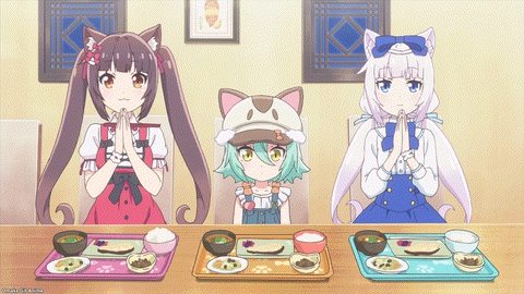 Cacao is getting better at her table manners. Ah. Kashou seems preoccupied. Here comes the incorrect mindreading drama on this week’s Nekopara. Jumping to conclusions, panic, and bad thoughts running away with them.