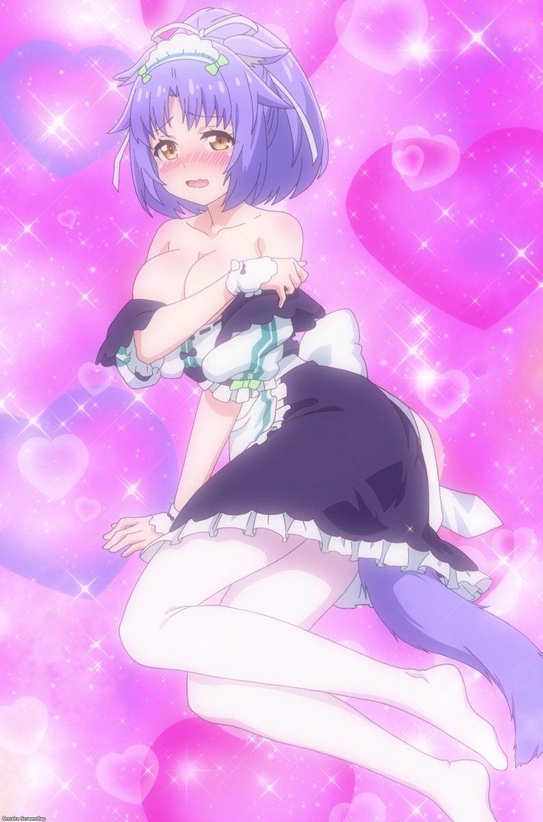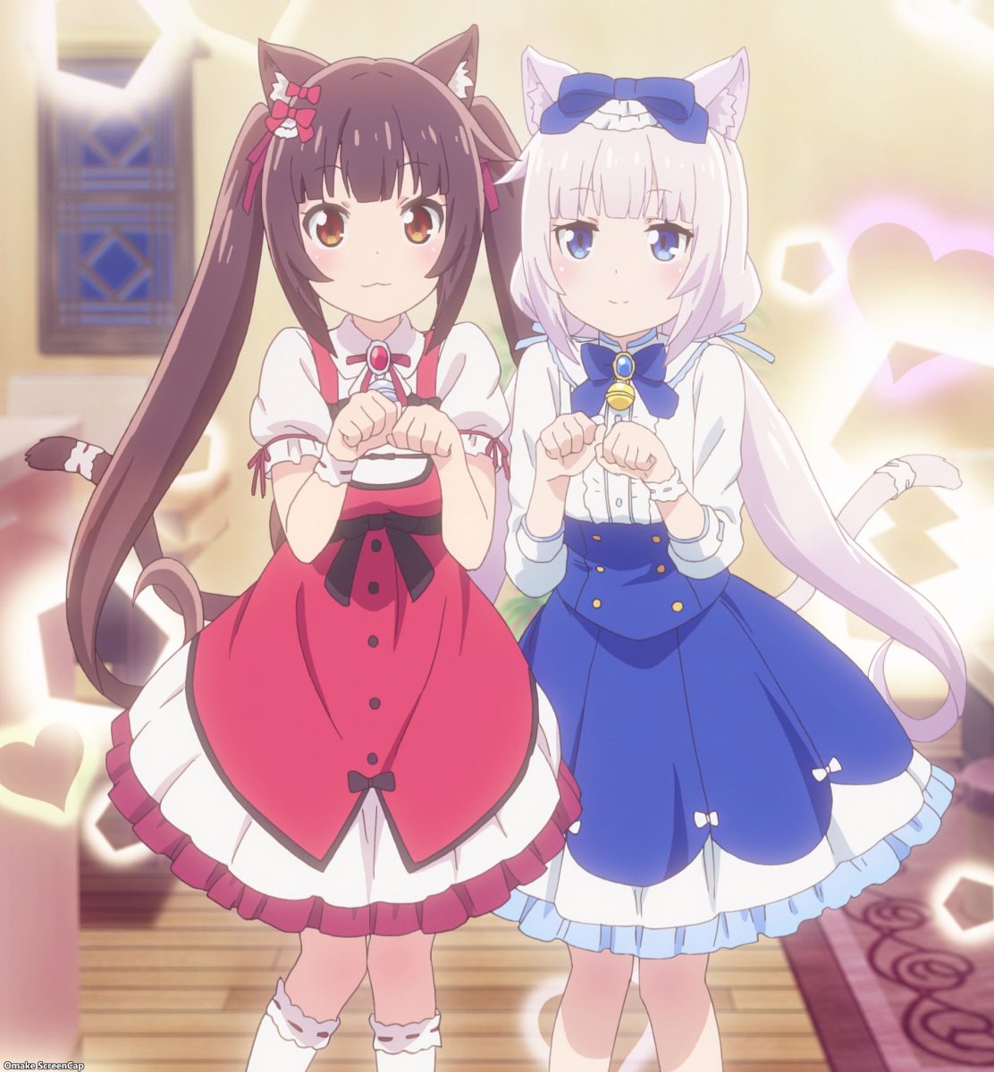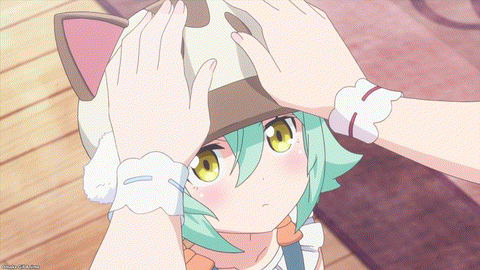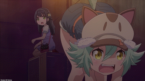 Uh oh. Cacao wants to help too. She’ll pass out cards again, but I’m more worried about her running around without a bell on. That was a big deal in the Nekopara game and OVA but doesn’t seem to be much of a thing here.