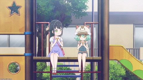 Chiyo will help a lost kitty. It’s now Cacao and Chiyo’s Adventure. Lazy cop… Azuki and Coconut just need to fight over the best ice cream flavor. Not hard to guess that Coconut likes coconut and Azuki like red bean paste. This is also about getting Kashou’s affection, so you know you’re still watching Nekopara. Oops. Azuki almost saw Cacao. This episode would have been over much quicker.