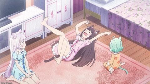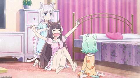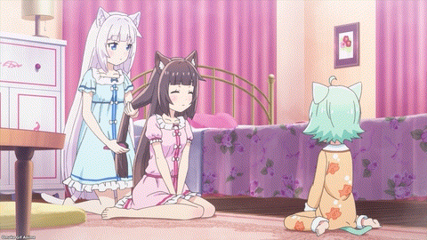 Cute. Cacao is waiting for her big sisters to come home after work. Head pats are the best reward. Now Chocola and Vanilla want to get head pats from Kashou. What a bad master! He’s taking them for granted.