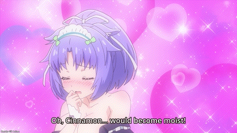 Cute maids handing out cards. Never seen that before! Cacao put one under her hat. That’s going to be important. Cinnamon and Maple are going to help too. And then Cinnamon’s dirty mind goes somewhere dirty. Stripping for cash would get her so moist! At this point, we must ask, “what wouldn’t get Cinnamon moist?” Maple is used to Cinnamon’s behavior.