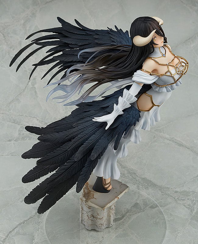 The figure is based on an illustration by character designer so-bin that was seen in the ending theme of the anime series and it captures Albedo’s peerless beauty in a dainty yet wistful pose. Her black wings are amazingly intricate with each and every feather sculpted separately for impressive detail. Be sure to add the “Pure-White Devil” to your collection and enjoy her beauty by your side whenever you wish!
