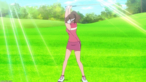 Aoi’s mother is a chic blonde chief executive type. Aoi is in Nafrece for an under-fifteen women’s golf tournament. Meanwhile, another old, fat man wants to beat Eve at golf with a young lady. Ah. Mr. Robert owns the golf course, and his niece Helene aims to test her skills against the Rainbow Bullet. Helene Robert is the Nafrece junior golf champion and will play in the U15 tournament against Aoi. But first, street golf! Uh oh. Lily put high stakes into this match. Her purity? Most prized possession? Hahaha! Straight through the tall tree in the middle of the fairway! And straight at the pin! Eve is no golfer! She hits a ball with a stick to make money. So… baseball player? So dramatic! BIRDIE WING cracks me up. Interesting. Helene gave up because Eve’s unconventional form and play would mess with her visualization and image training. What a mentally mature teenage girl.