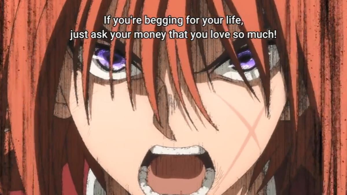I’ll admit, I liked the 1996 version better. Beshimi had a solid plan. We also saw Kenshin dodge bullets, reverse his sword to cut the Gatling gun’s handle, and change color as he smashed Kanryu in the face.