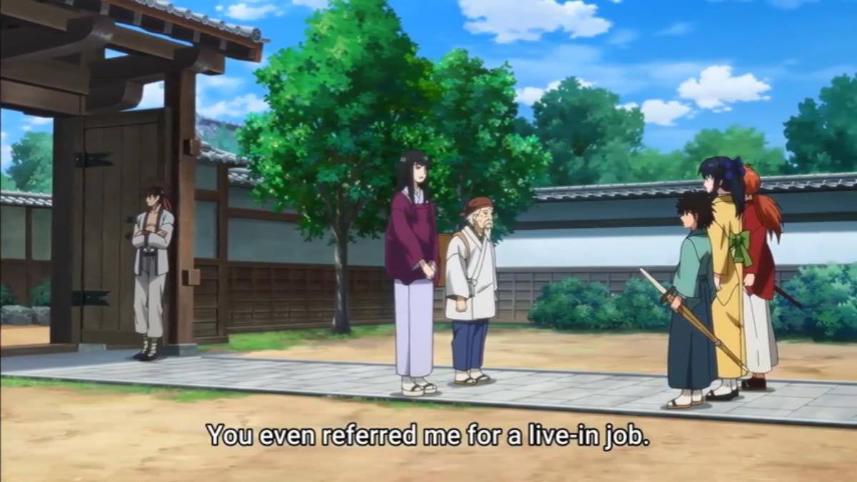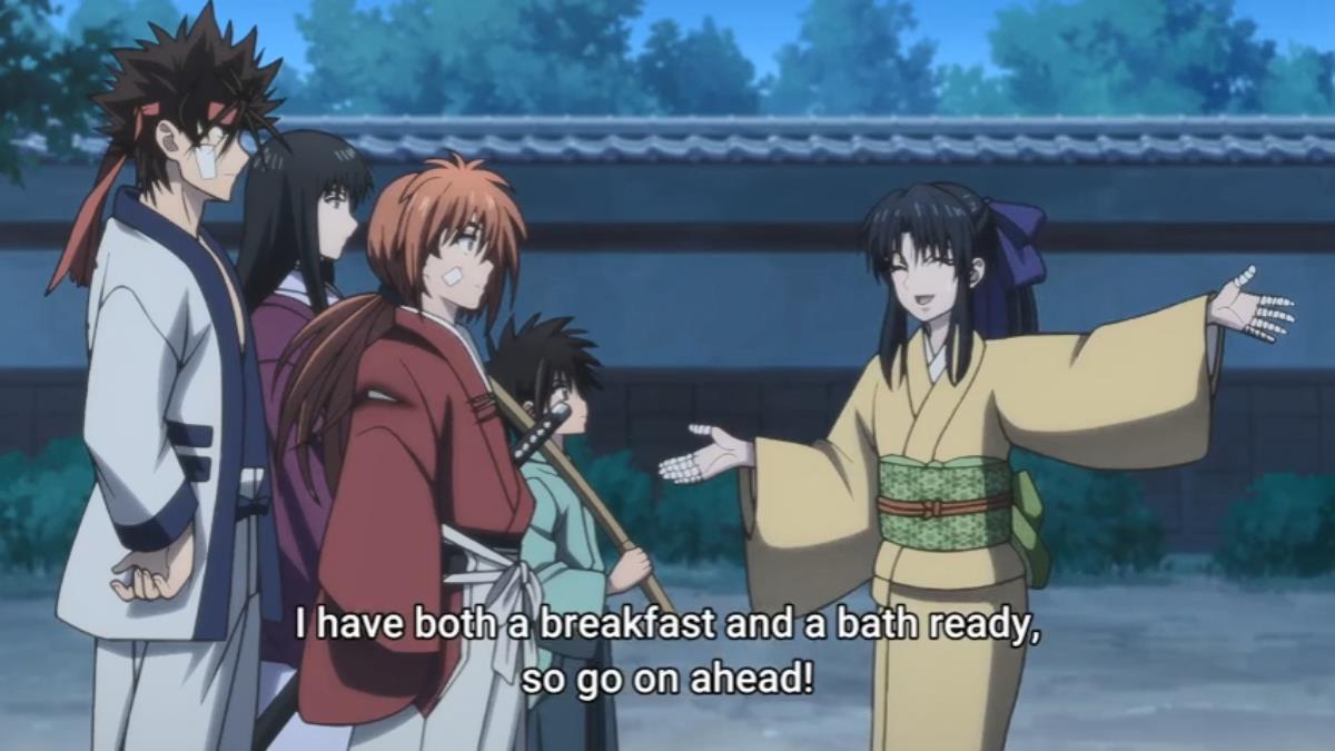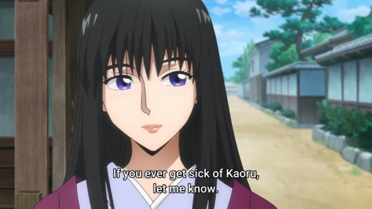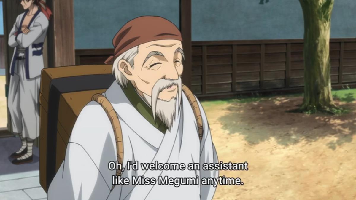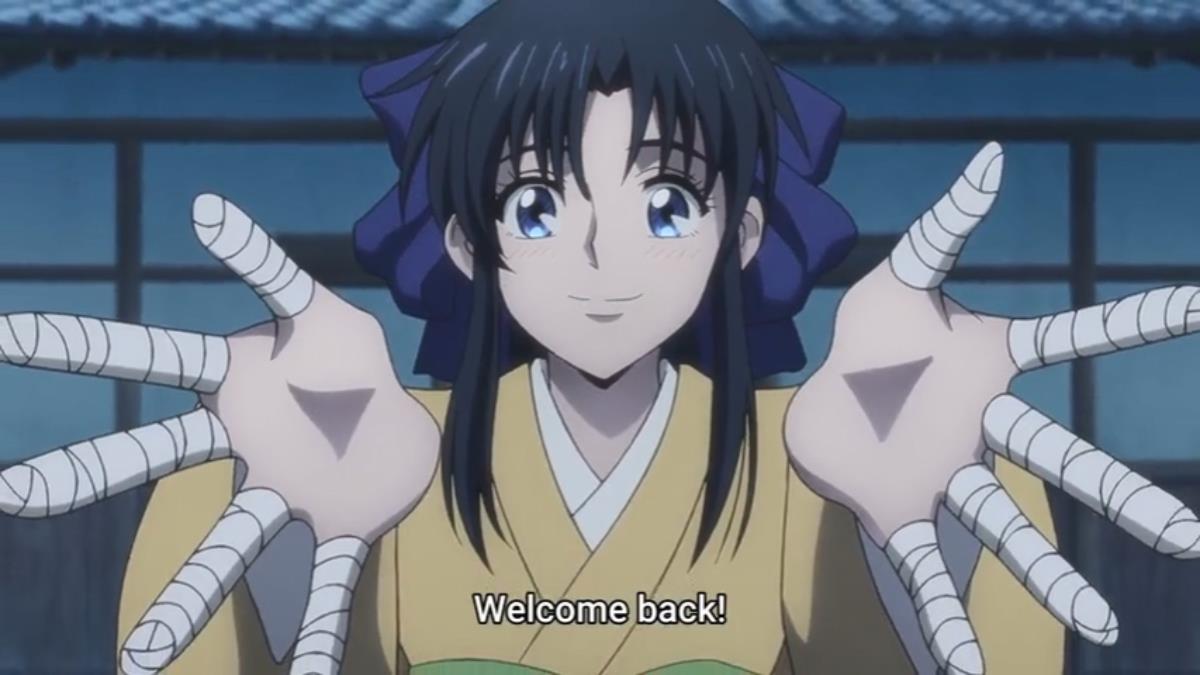Kenshingumi’s return home had more levity in 2023. Kaoru happily greeted them with bandages around her fingers, apparently from her attempts to prepare food for them. She talked Yahiko and Sanosuke into eating her finely prepared meal. In 1996, the scene cut to Megumi taking her leave to learn under Dr. Gensai, who does indeed show up in the 2023 episode. Our hunt for the doctor is officially over. Now we search for Ayame and Suzume. 1996 also omitted the Oniwabanshu members getting beheaded by Aoshi. Sanosuke explained that Aoshi and the Oniwabanshu members had vanished, and that no bodies were found. The episode ends with Megumi flirting with Kenshin, which annoys Kaoru. That scene was unfortunately left out of the 1996 version.