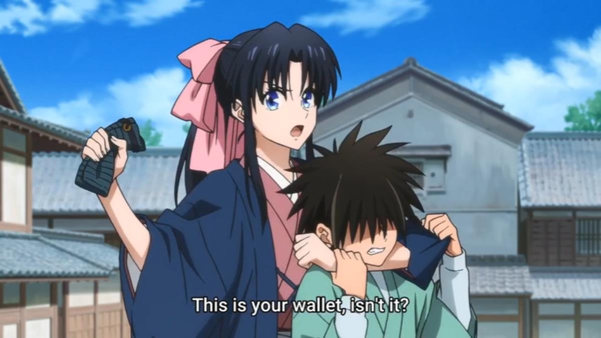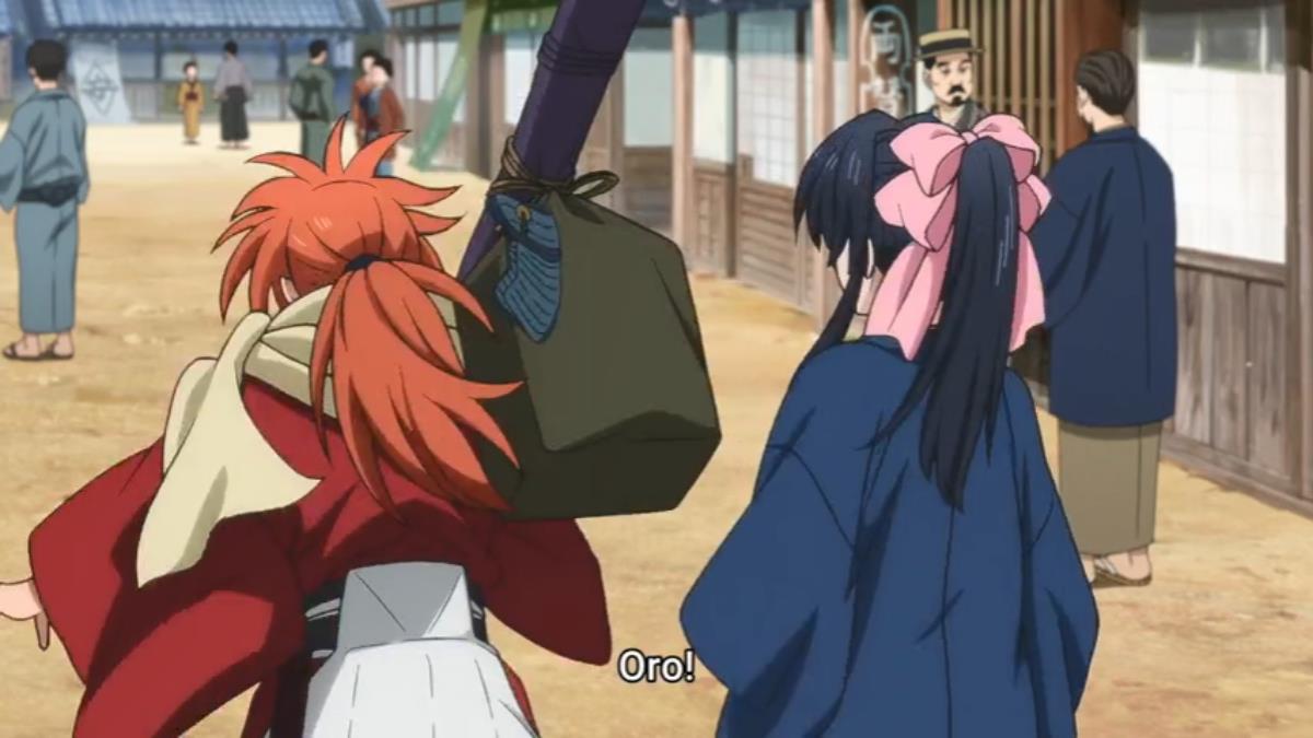 The best “crouching moron” scene from this episode has to be the second instance, where Yahiko throws Kenshin’s wallet at him. Kenshin takes a shot to the back of the head and stumbles. Sure, no regular person could avoid that, but it was still funny to see.
