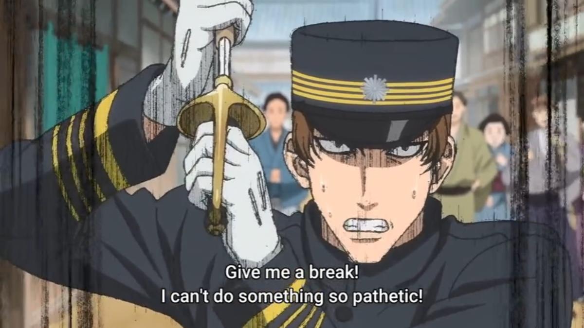 The police chase after Kenshin because he’s in violation of the Sword Abolishment Edict (Haito Edict). He runs from them, but he doesn’t use his true speed to evade them. He even decides to give himself up. That plan changes when Lieutenant Ujiki of the Sword Bearing Police arrives, threatening people who don’t clear the way.