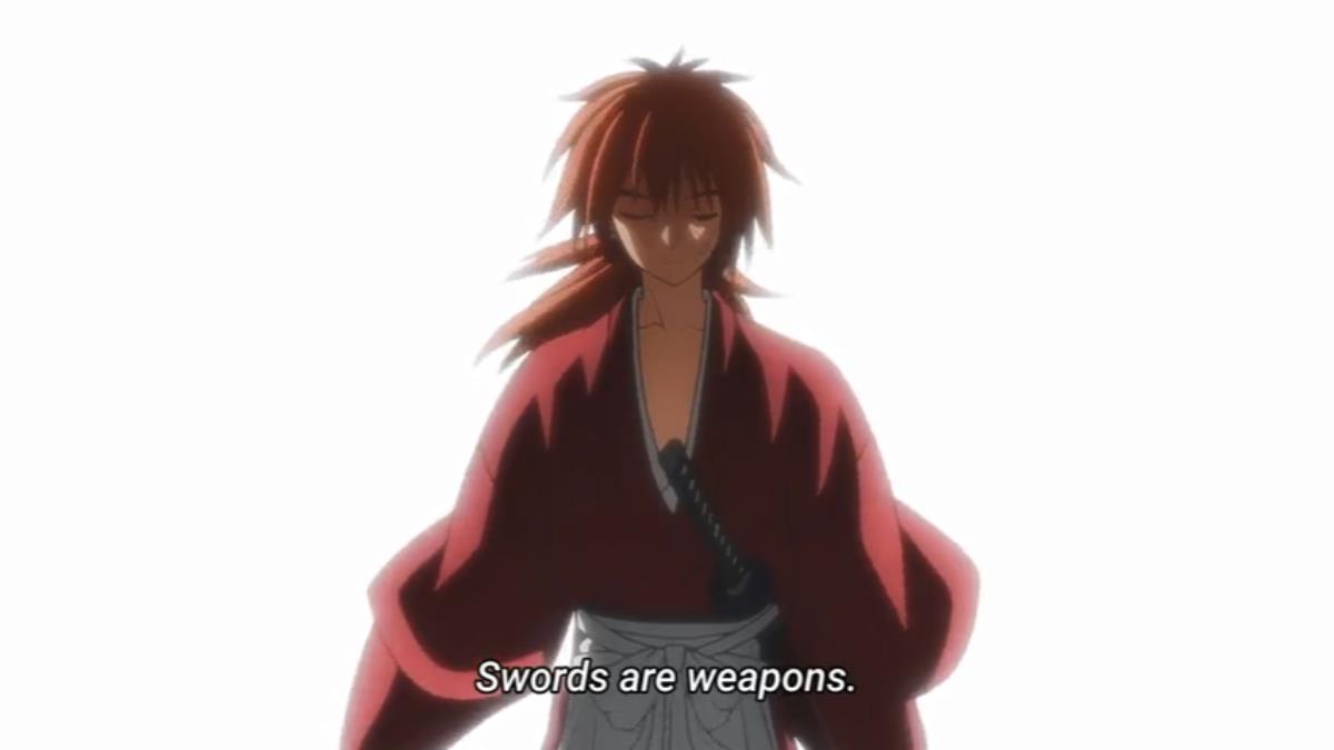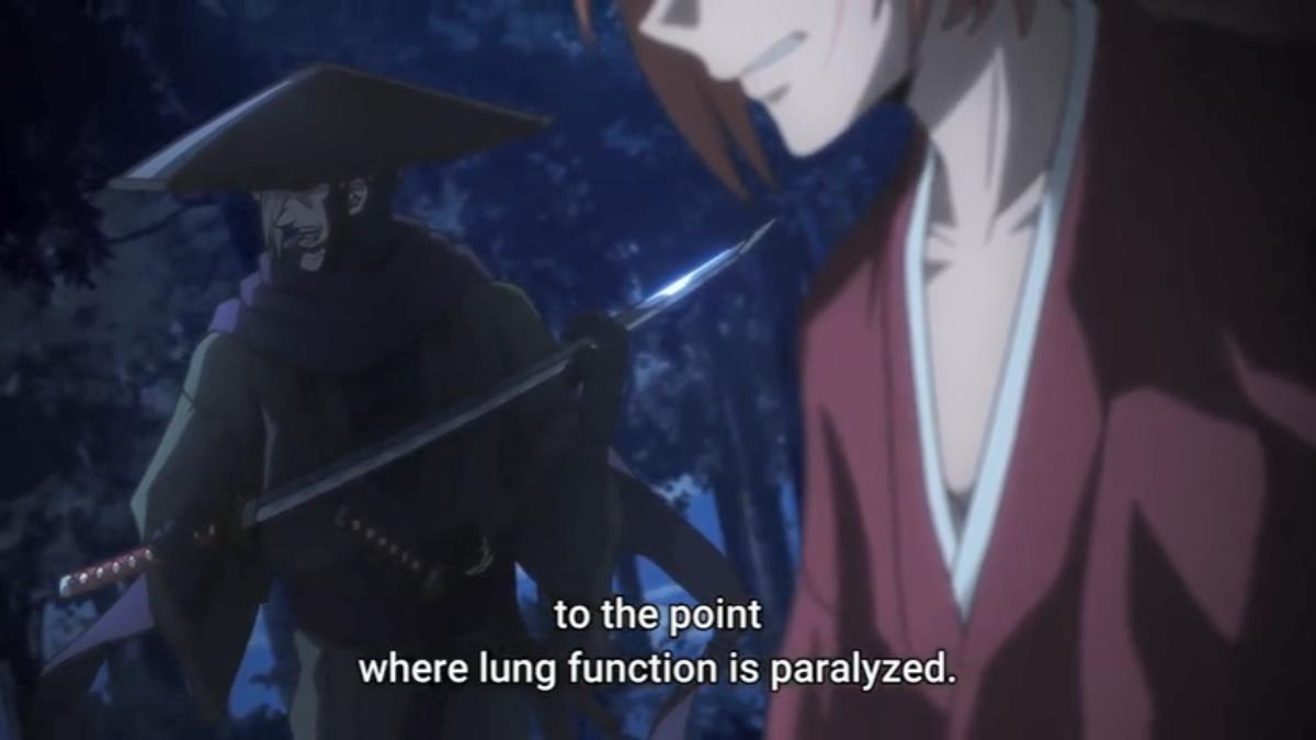 Yahiko and Sanosuke don’t show up in this scene, so we don’t get the comedic bit where they fall into the mud and argue about following the wrong tracks. We don’t see them until the end, and they don’t even get speaking roles. They only serve as comedic foils to an otherwise heavy episode, but it was played so well in 1996 that they didn’t break the tension. Still, I can understand why they were missing, even if I didn’t like it.