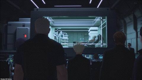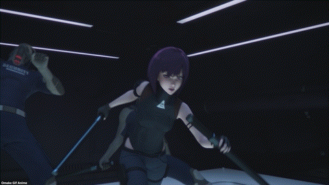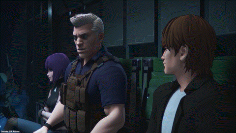 Gary Harts escape attempt gave us a memorable SAC_2045 action episode too. It was such a great idea to use bits of gibberish code to leap an airgap and turn it into malware. There’s the “Quantized Gospel” the techs needed to interpret and decipher. The post-human played on assumptions about his medical condition and turned it to his advantage. Smith mentioned they knew enough of the code to believe the latest scrawl had something to do with Section 9’s visit. Did Harts pull the trigger on assembling the last bit of his malware because he saw outsiders come in to look at him? Did he recognize their group? It’s fun to guess whether the Major’s reputation preceded her.