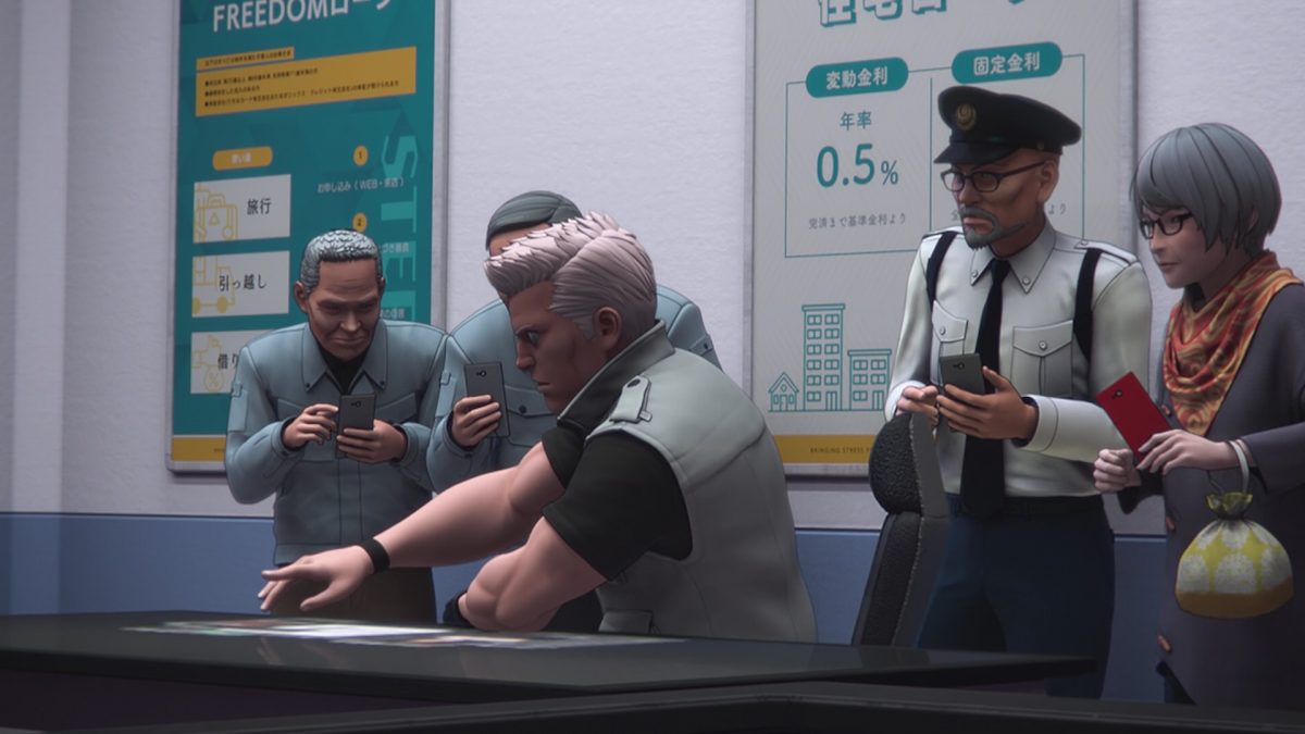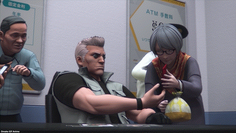 Batou went straight to a bank. He must have a bag full of foreign currency to deposit. Aw. The elderly still have trouble with login IDs and passwords in 2045. Is 2-Factor Authentication not a thing in SAC_2045? Those with cyberbrains have it easier at security checkpoints. The branch manager is helpful but brusque. Batou appears to have sympathy for the older generation. He makes a good observation about banks becoming nursing homes, though. Younger folks these days do almost all their banking transactions through apps or PC’s.