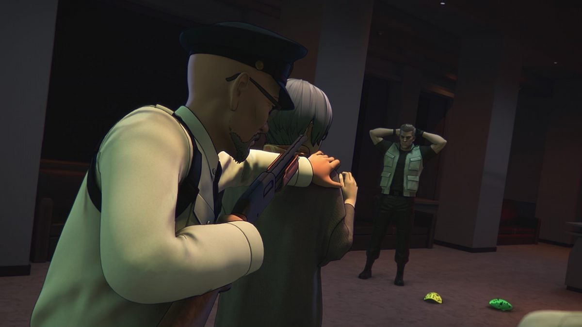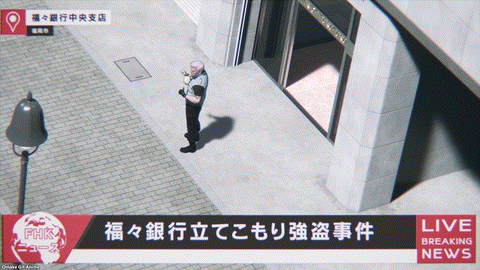 Har. The cops arrived and say it’s the first bank robbery in 25 years! Geezers! SAC_2045 started production in 2018, so did the writers base theirs on a bank robbery in Fukuoka in 2017? Hahaha! Batou as a hostage! Hahahaha! He’s wearing a bentou bag like a bomb necklace! I’m dying. Batou thinks he’s a funny guy. I agree! Complain about the CGI all you want, but the spirit of Stand Alone Complex is all right here.