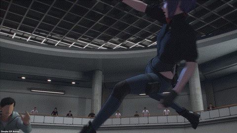 Purin cracks me up. She’s always so happy to see Batou. Did SAC_2045 create a Tachikoma in human form? Ha! Purin doesn’t officially work for Section 9, yet she’s finding cases for them which might point to post-humans. Interesting way to visualize a synchronized distributed hacking attack. Purin thinks the synchronization of millions of hacking attempts is the work of a post-human. The Major agrees!