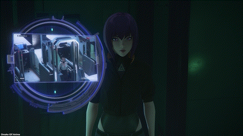 Ooh, a lead. The glasses-wearing post-human showed herself on camera. Is she the one doing this cyber flash mob rage? Or a SAC_2045 red herring? This Mizukane lady is dressing way sexier than her ID picture. She even has red frames now! Har. Motoko won’t give Purin orders since she’s not in Section 9. Well, who does Purin work for then? Ishikawa and Borma put Purin at ease. The Major likes loose cannons, so Purin should go out and make some noise on her own.