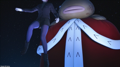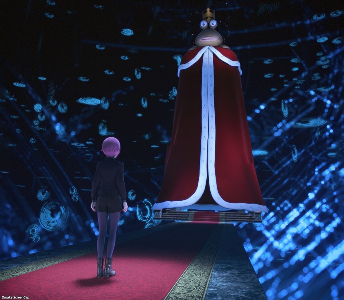 SAC_2045 makes me think of Psycho Pass with this strange venue of the Nameless King and his odd mudpuppy avatar. I think the writers were wise to let Purin go through this unserious stuff instead of Motoko and the rest of Section 9. The heart of the flash mob is the Think Poll (also a pun on Sync Poll) engine, where social media decides whether someone lives or dies like in a Roman gladiator fight. This is the post-human’s work.