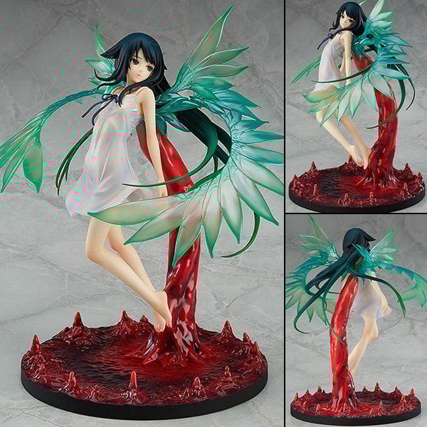 The figure captures Saya’s slender build and makes use of a gentle gradient for her hair and translucent parts for her wings to create a touching, beautiful appearance. The base she is held up by has an unsightly, fleshy appearance that brings out the unique atmosphere of the game while also creating a contrast to the figure that brings out her beauty even further. The careful balance between the beautiful Saya and the grotesque base is sure to stand out in any collection. The wistful, transparent expression on her face brings out a somewhat cold feeling to the figure, but that feeling just makes her all the more eye-catching!