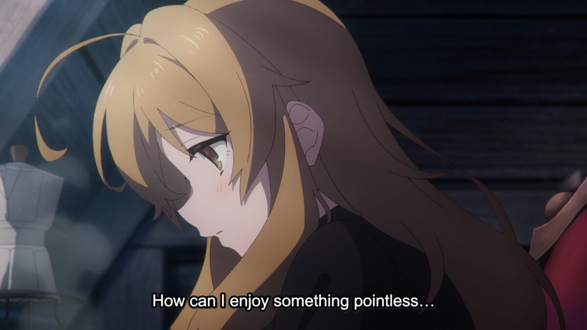 I’d bet my Kantoku doujins that Saya Aizawa (Monica’s VA) has struggled in life. Not only can she perfectly capture Monica’s strife, but she’s also the VA behind Nana in Food for the Soul, Norn in Mushoku Tensei, and Hina in NEET Kunoichi. Either the homegirl is on a serious typecasting streak, or every producer in Japan knows she’s an A+ introvert at heart. Can I prove that? I cannot. But I know when I’m hearing the voice of someone who understands the struggles of those who can’t socialize, and Saya-san has that voice.