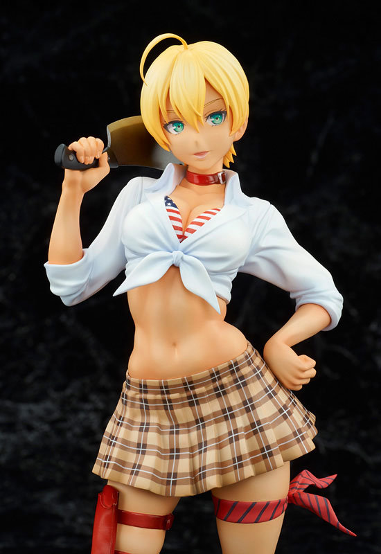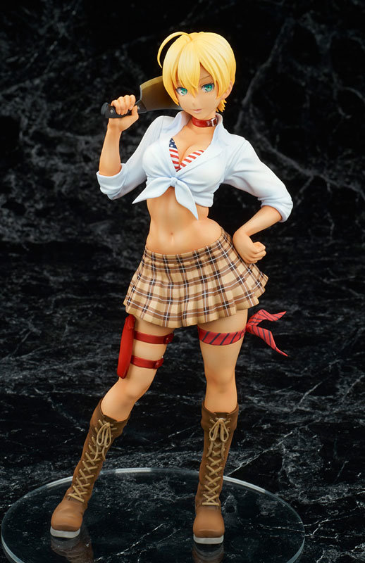 Her bodacious body is perfectly recreated in figure form, wearing her sexy school uniform while holding a meat cleaver. Her confidence exudes all over her body from her expression to her pose.