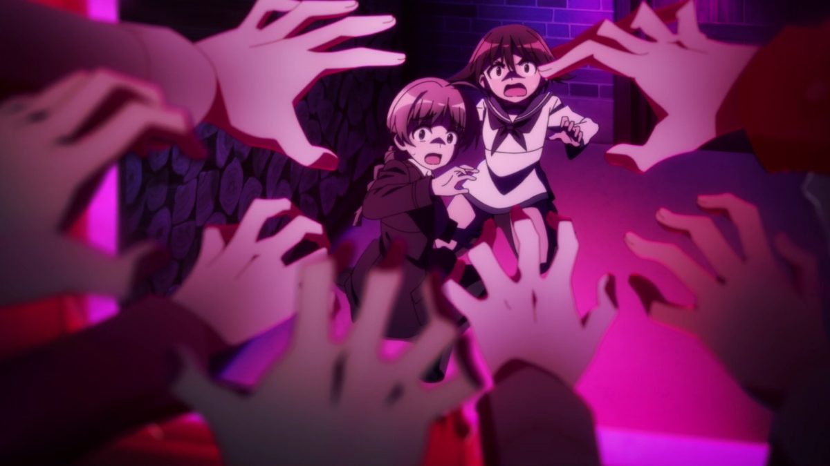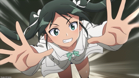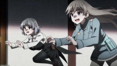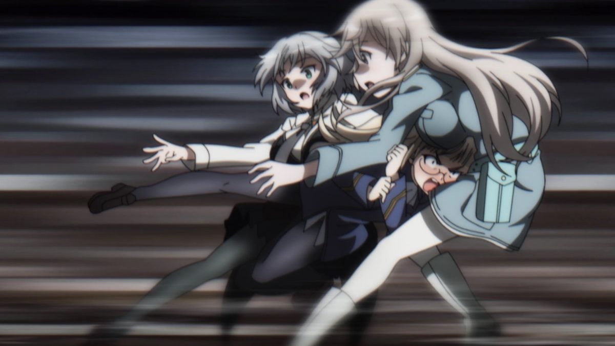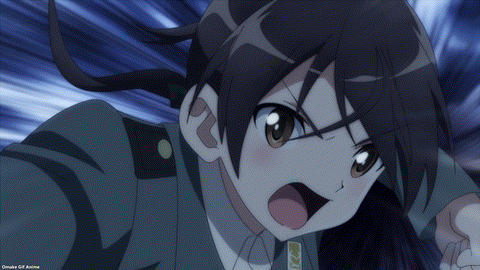 Who’s the next victim on Strike Witches’ House of Oppai Horrors? Sanya and Eila chase Perrine and Lynne. This fanservice show has us covered coming and going. A flashback to the first season and celestial rays of censorship! Perrine’s flat justice serves Sanya and Eila um, er, justice. Oh no. Perrine received a stray grope during her tackle. It’s like a zombie or vampire movie. Shizuka sacrificed herself to buy time for Yoshika and Lynne. I’m sure she just wanted to experience having big boobs for a little while.