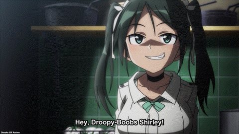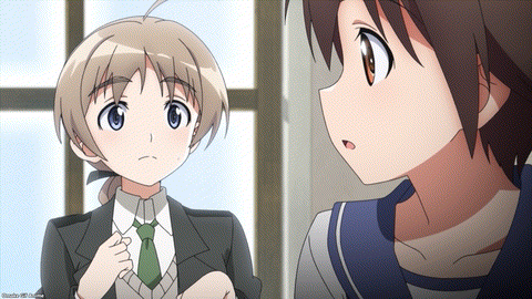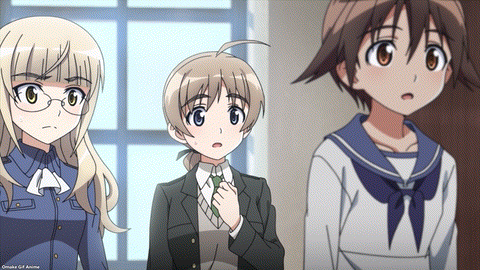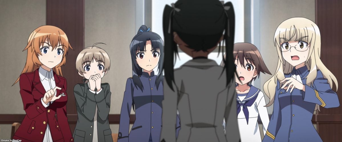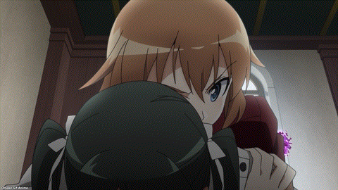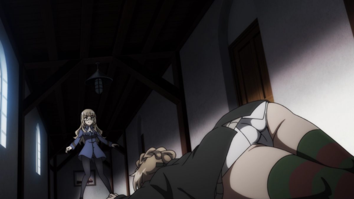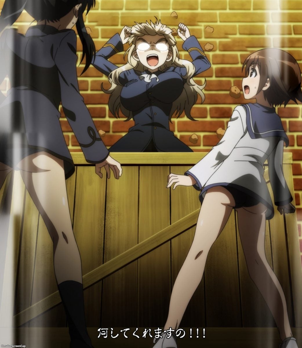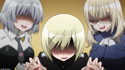 Oh man. Strike Witches will give Minna bigger boobs too. What a blessing! Obviously, this is a farce zombie movie episode, but shouldn’t there have been a general alarm about an intruder on base before Trude and Hartmann complained about dinner being late? Oh Minna, in her burgundy underwear… I’m dying. Thank you so much, Strike Witches, for this wonderful episode. Trude is so harsh! Erica knows something is wrong because Perrine and Sanya have bigger boobs that she does. Trude claims that they always have! Ahahaha! Ach. Erica just wanted bigger boobs too. This is comedy gold!