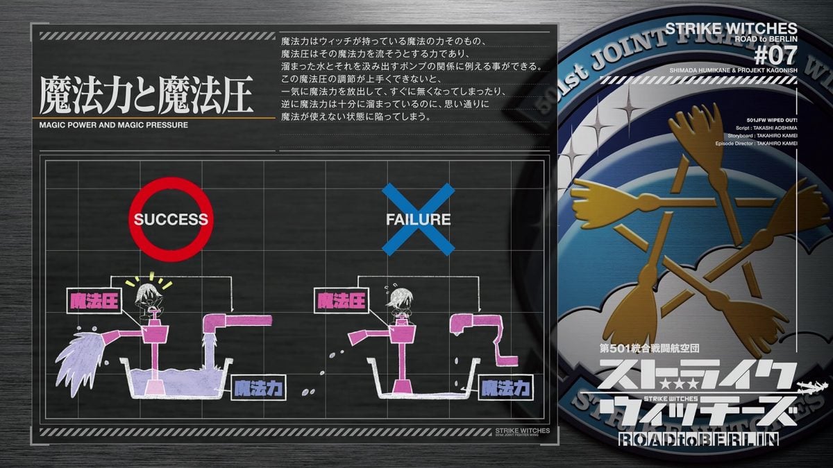 Uh oh. Yoshika’s trouble with magic pressure isn’t over yet. I think it’s time for Lynne to take over healing Yoshika’s magic problem for good. Lynne paraphrases the doctors in that Yoshika has a magic source and pressure problem. The Strike Witch fixed her pressure problem with conscious focus, but she hasn’t fixed her source problem yet, which can drop to zero, leaving her nothing to modulate the pressure.