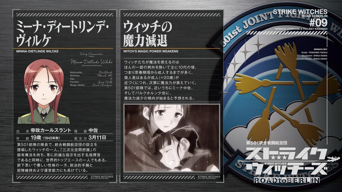 The main drama of the season is in full swing now, but that doesn’t mean Strike Witches will ignore any chances it has to make fanservice. Ursula, Erica’s nerdy twin, helps the audience with formulating jet fuel that melts clothing. Thank you, thank you, Ursula! Minna is a fanservice machine just being on the screen, so any story featuring her is going to be a treat. She’s also famous for her beautiful singing voice which Strike Witches used to full effect in an insert song. The road to Berlin has many entertaining rest-stops along the way.