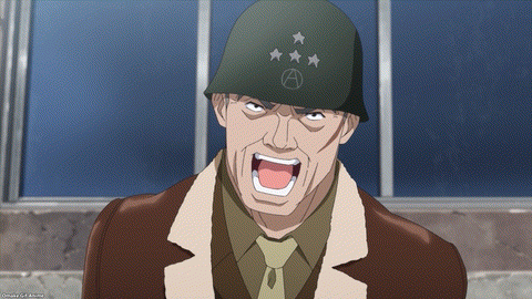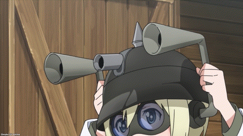 Hey, General Patton is ready to go! Ooh. Erica’s little sister Ursula is here too. She’ll have the crazy useless tech for Strike Witches jokes. Helmet gun. Hearing horns. Rocket Launcher. Trude likes that last one. Speaking of rockets, boom! The Neuroi attacked Patton’s tanks. This is a nice reference to the real Patton’s car accident during WWII.