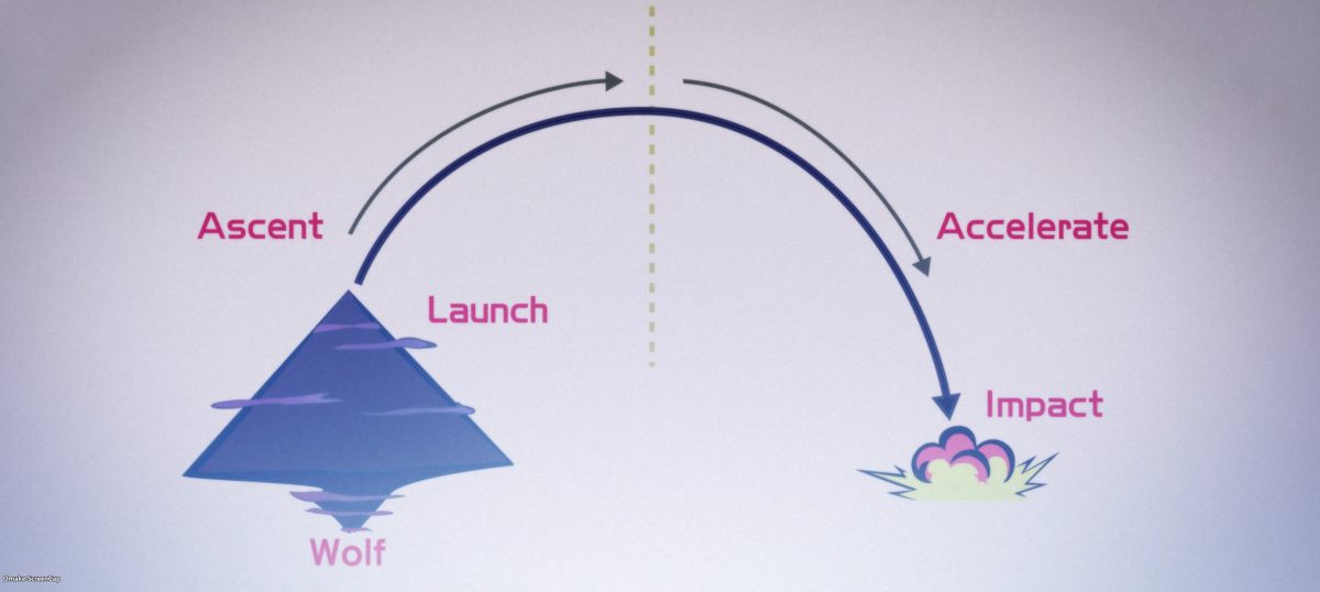 Wolf, the Neuroi nest over Berlin, is the rocket launch site! Will Strike Witches make the rockets look like V2’s? The plan is to hit the rockets at apogee at its slowest. Oh! Ursula made jet Striker Units that don’t drain magic power so quickly. It’s a Messerschmitt Me 163 Komet, of course. The secret is the jet fuel mixed with Strike Witches’ magic. Uh oh. Lucchini likes mechanical things, but they don’t like her. That jet fuel is magic in other ways too, like creating fanservice out of thin air! This will be awesome by the end of the episode, I’m sure. Minna proclaims she’ll be the Komet’s pilot.