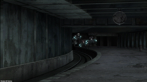 Things look bad inside the Zoo Tower. There goes the Landkreuzer. Boom! Strike Witches take the subway. Uh oh. One of Shizuka’s flying boots has damage from when the dome wall came down on her. She’ll need to stay behind. Key plot moment, I’m sure, coming right up! Berlin’s Underground has seen better days. Trude needed her super strength to get inside an access tunnel.