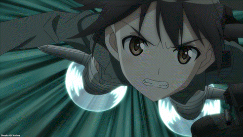 With all this shooting going on, I always wonder where the Strike Witches keep their ammo. Hahaha! Eila still has time to be possessive of Sanya. Oh ho. Shizuka got Yoshika’s toys for Christmas. Can she handle those Striker Units? She’ll need to, because it’s the only way to set off a bomb directly on the dome. Ah. Shizuka feels Yoshika’s machine draining her magic too quickly. Shizuka got it! We still have time for panty shots in the season finale.