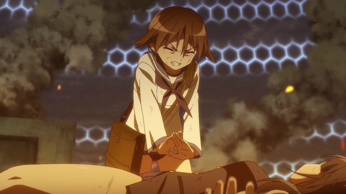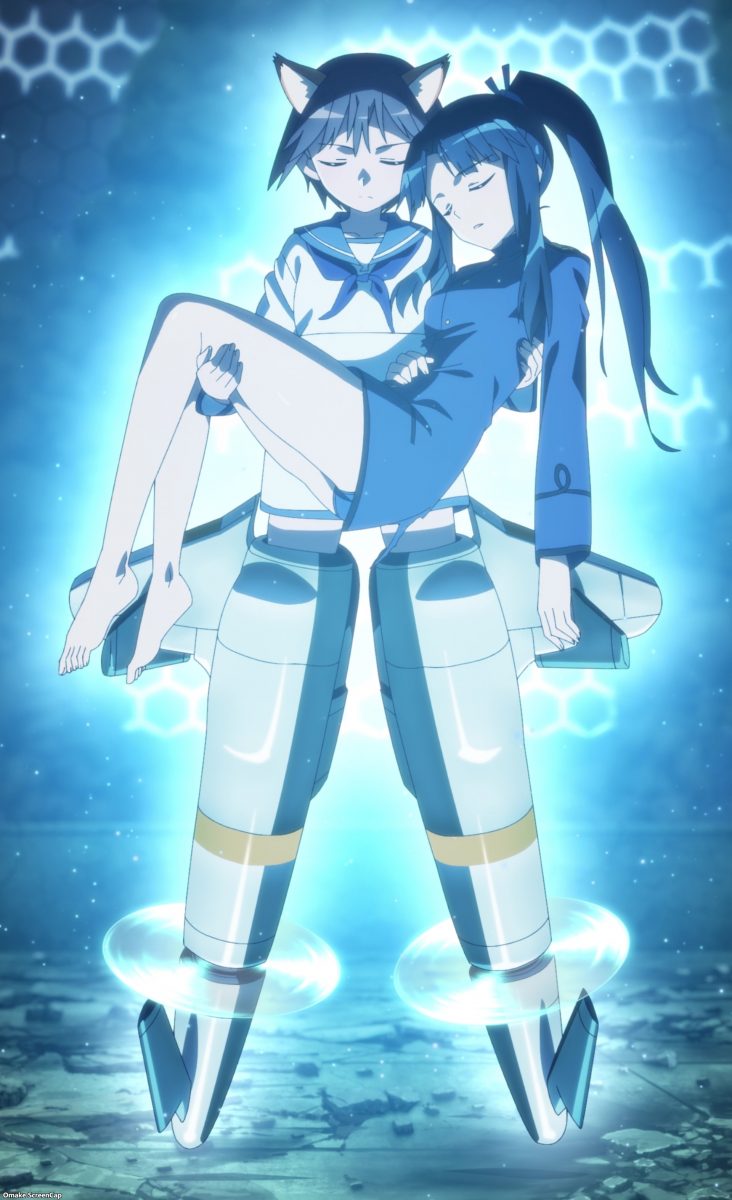 The other Strike Witches find a fully functional Yoshika, who credits Shizuka for making it happen. Shirley asked the right question, “What the heck is going on here?” Just enjoy the Super Saiyan Yoshika, okay? Ugh. The Wolf Neuroi built that Germania city up in the sky like a cloud. Too late for that guy. The 501st Joint Fighter Wing stars in a music video taking down a red city. Don’t even try to count the panty shots.