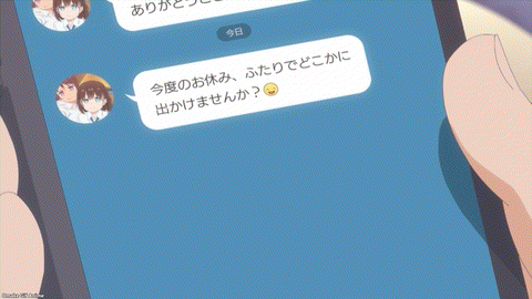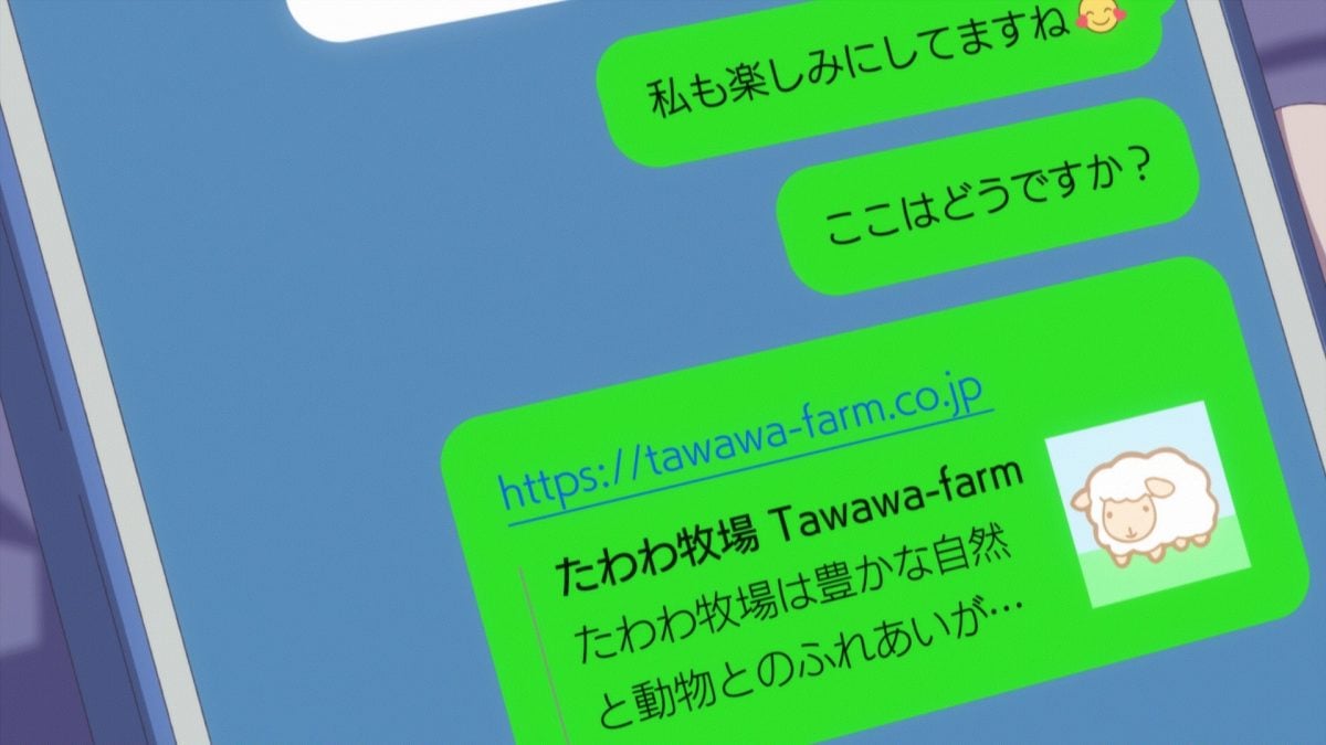 Well, their relationship has made much progress since she first squashed his face with her “I-chans” at the fated first encounter. I get a tickle out of Aichan’s and Oniisan’s chat avatars. You can tell neither one chose those pictures themselves. Volleybu-chan displays her possessiveness, and Aichan captured Oniisan’s embarrassed face at the train station. I love these details in Tawawa on Monday. Oh, nice. Aichan wants to go to Tawawa Farm! I think we’ll see Cowgirl-chan there. Uh, did nobody on the production committee think to buy that domain name? How much is “tawawa-farm.co.jp” worth these days?